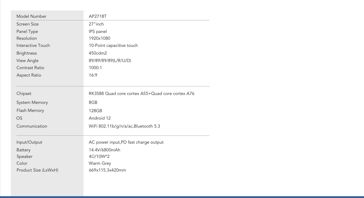 شاشة ذكية محمولة مقاس 27 بوصة مع شنطة Apolosign PackGO