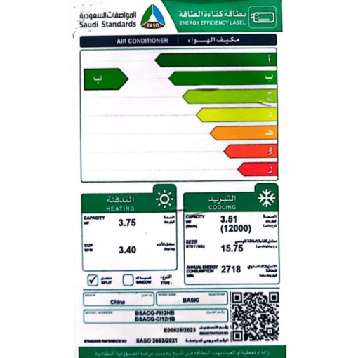 مكيف سبليت بيسك 12000 وحدة – انفيرتر – حار/بارد