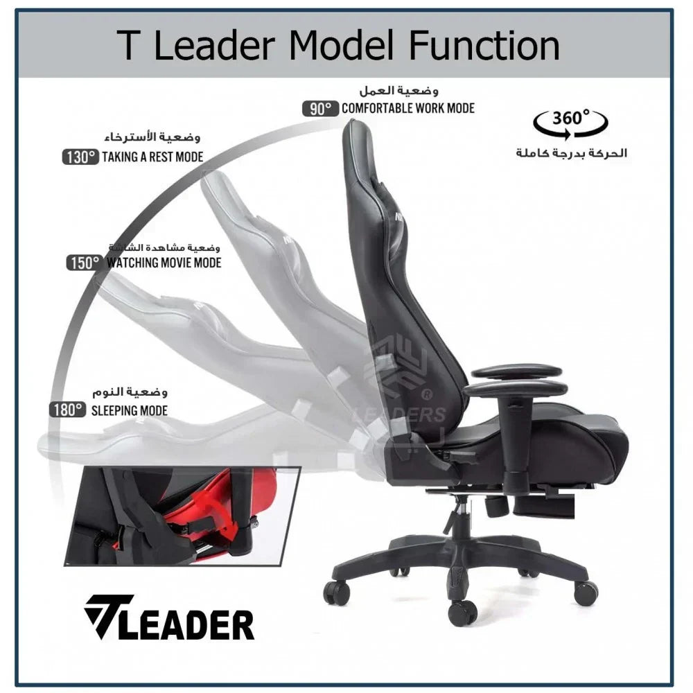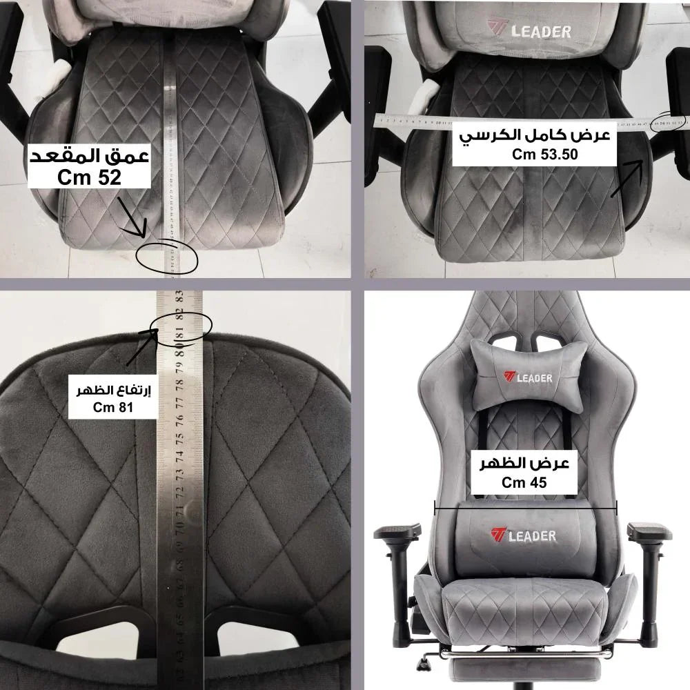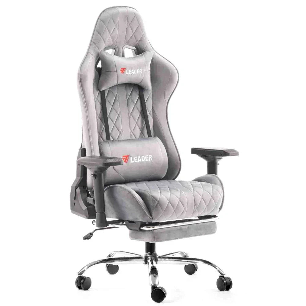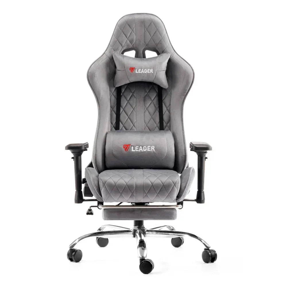 619-كرسي قيمنق ليدر فئة T مخمل رمادي دايموند مع مسند القدم
